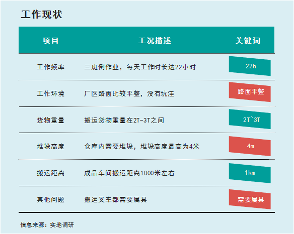 在貨物搬運(yùn)中,該基地整體工況主要特點(diǎn)是工作時(shí)間長、貨物重、搬運(yùn)距離長:
